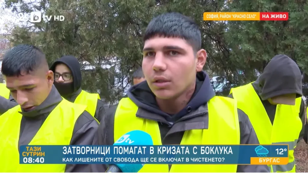 В репортаж на bTV бяха показани затворниците, които ще полагат общественополезен труд под охрана на двама униформени полицаи – за спокойствие на гражданите.